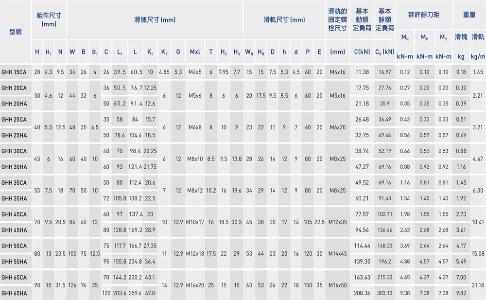產(chǎn)品名稱:GHW-CC、GHW-HC滾珠式線性滑軌