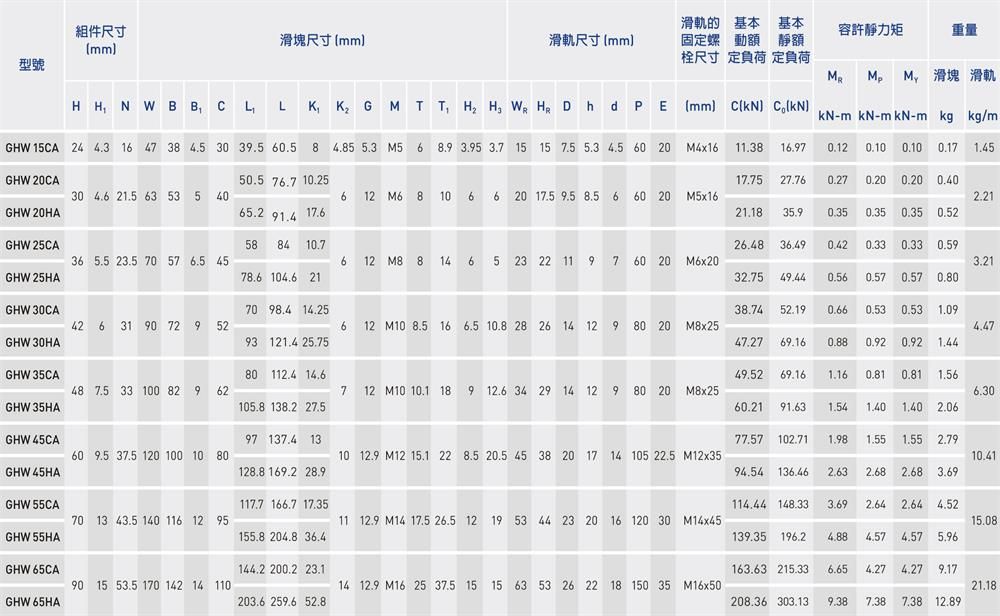 產(chǎn)品名稱(chēng):GHW-CA、GHW-HA滾珠式線(xiàn)性滑軌